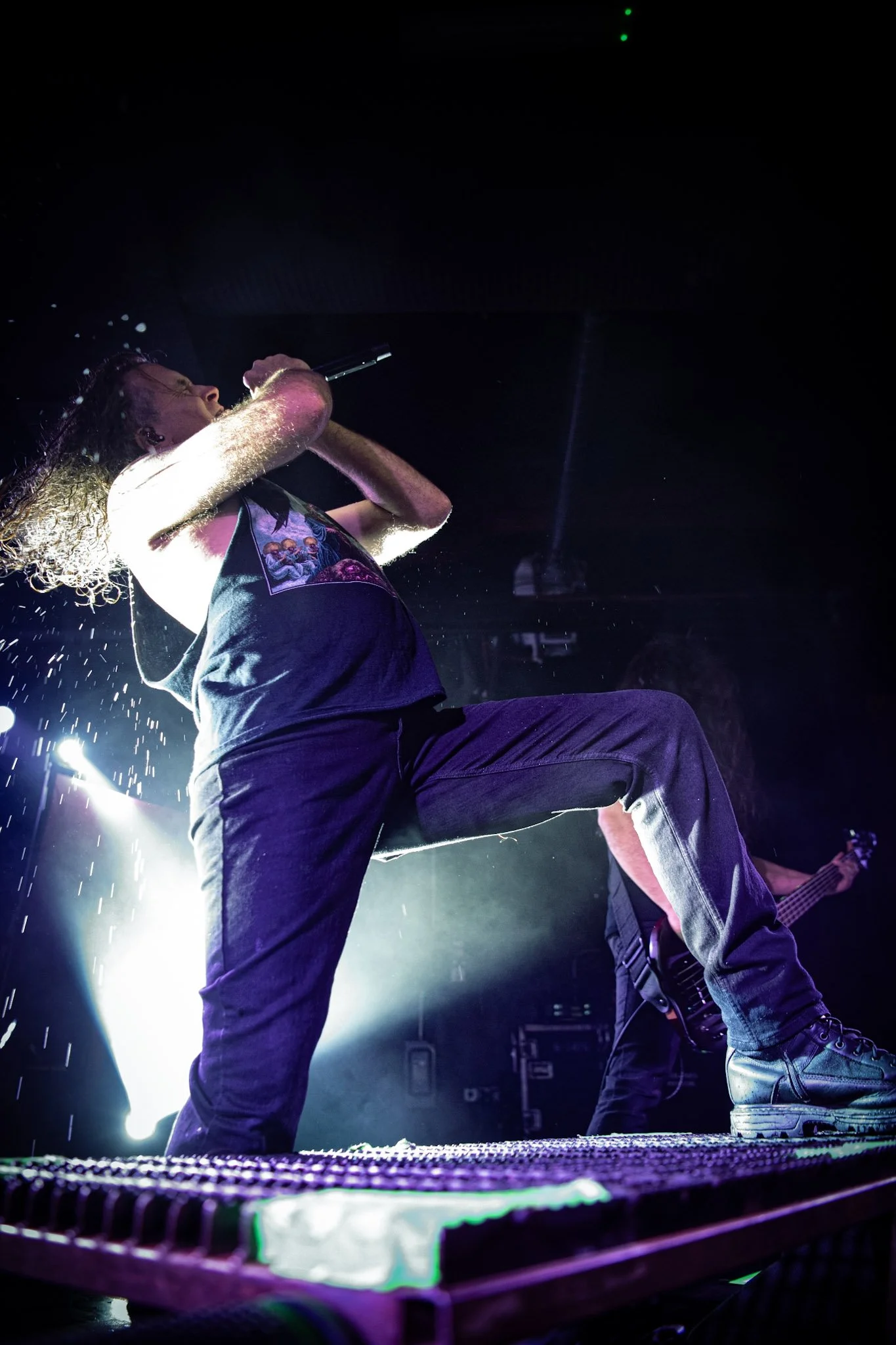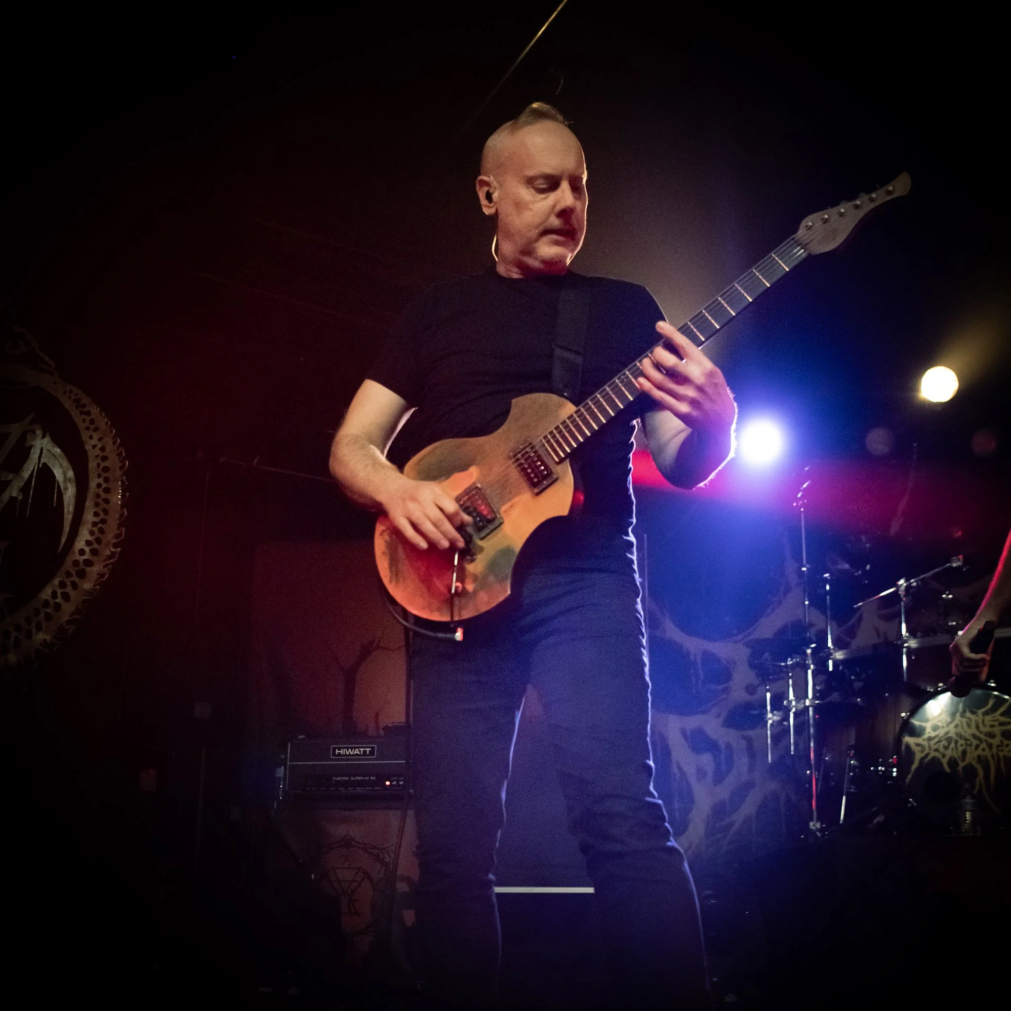 Finally, San Diego’s legendary deathgrind band CATTLE DECAPITATION took to the stage and performed their iconic 2019 album “Death Atlas” in its entirety. If you aren’t familiar with CATTLE DECAPITATION, this band (IMHO) is one of the top bands I have seen live. And, to get to hear “Death Atlas” in its entirety, after being warmed up by three solid openers, was mind blowing. They opened with “The Geocide,” showcasing thought-provoking lyrics juxtaposed with brutal riffs, blast beats, and the haunting screams of Travis Ryan. Speaking of Ryan, his ability to switch from high pitched screams to guttural thought-punching growls is nothing short of amazing. If you get a chance to see one of the best extreme bands live, take it. CATTLE DECAPITATION delivers.